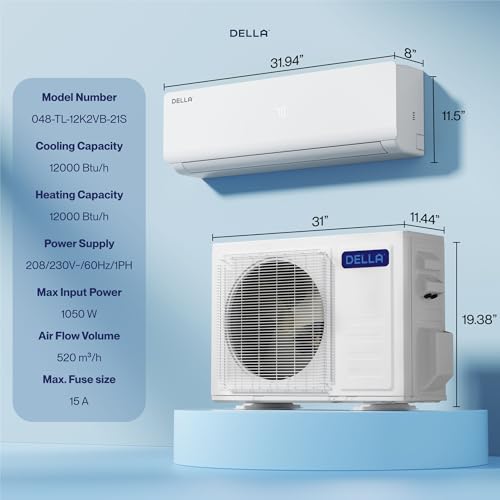 I recently tested the Della 12,000 BTU Mini Split Air Conditioner Heater Ductless Inverter System for a product review. It is a high performance air conditioner with 19 SEER, 115V, 8 HSPF, AHRI Certified pre charged air conditioner and heater unit. This product is perfect for those looking for energy efficient cooling solutions in their homes.