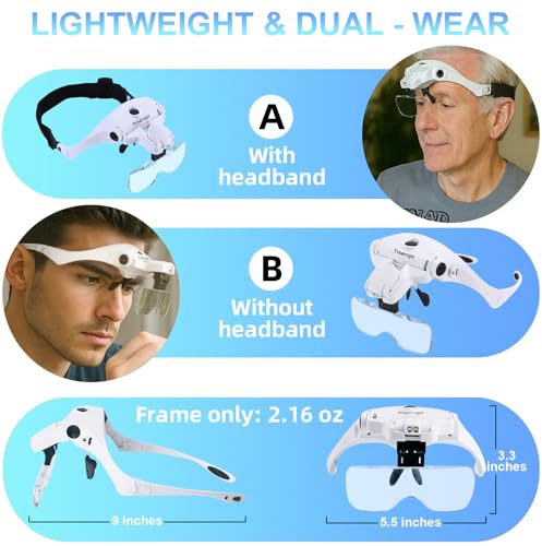 Tmango Head Mount Magnifier with LED Lights is an innovative product that is designed to help people who need to see things magnified. It has a number of features that make it stand out from other head mounted magnifiers on the market.